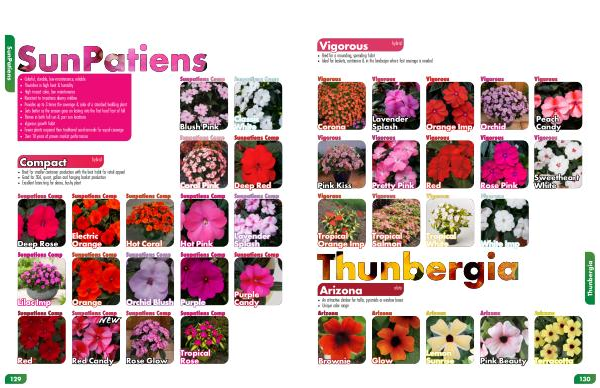Vigorous Vigorous hybrid • Bred for a mounding , spreading habit • Ideal for baskets , containers & in the landscape where fast coverage is needed Corona Corona Vigorous Lavender Lavender Splash Splash Vigorous Orange Imp Orange Imp Vigorous Orchid Orchid Vigorous Peach Peach Candy Candy Vigorous Pink Kiss Pink Kiss Vigorous Pretty Pink Pretty Pink Vigorous Red Red Vigorous Rose Pink Rose Pink Vigorous Sweetheart Sweetheart White White Vigorous Tropical Tropical Orange Imp Orange Imp Vigorous Tropical Tropical Salmon Salmon Vigorous Tropical Tropical White White Vigorous White Imp White Imp Vigorous Arizona Arizona alata • An attractive climber for trellis , pyramids or window boxes • Unique color range Brownie Brownie Arizona Glow Glow Arizona Lemon Lemon Sunrise Sunrise Arizona Pink Beauty Pink Beauty Arizona Terracotta Terracotta Arizona 130 Thunbergia