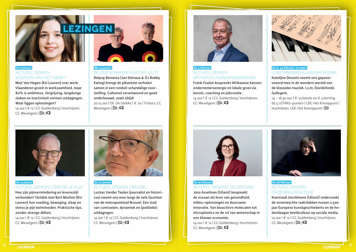 ACTUEEL DENKEN | DE OCEAAN Jana Asselman( UGent) bespreekt de oceaan als bron van gezondheid, milieu-oplossingen en duurzame innovatie. Van bioactieve moleculen tot microplastics en de rol van wetenschap in een blauwe economie. 14 uur | € 12 | CC Guldenberg | Inschrijven: CC Wevelgem | |