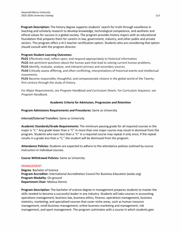 Gwynedd Mercy University 2025-2026 University Catalog 113
