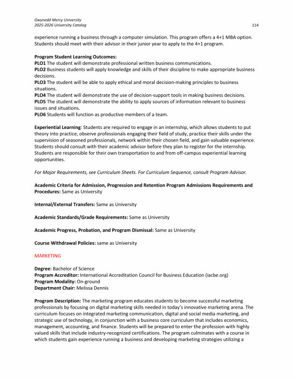 Gwynedd Mercy University 2025-2026 University Catalog 114