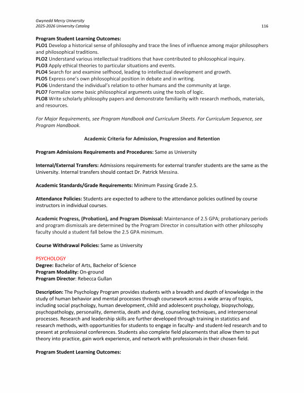Gwynedd Mercy University 2025-2026 University Catalog 116