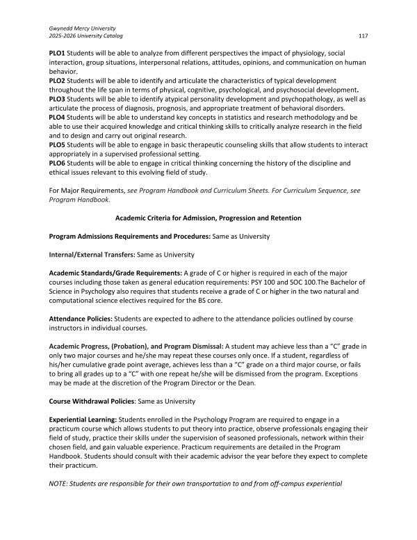 Gwynedd Mercy University 2025-2026 University Catalog 117