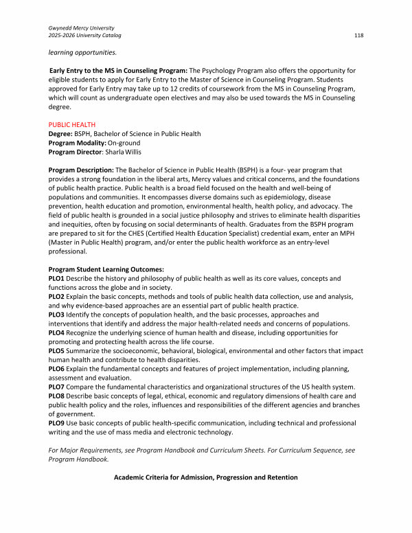 Gwynedd Mercy University 2025-2026 University Catalog 118