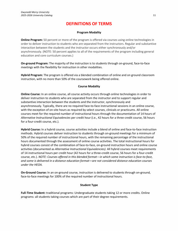 Gwynedd Mercy University 2025-2026 University Catalog 11