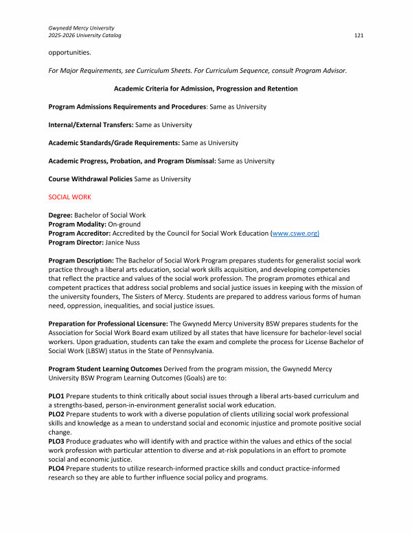 Gwynedd Mercy University 2025-2026 University Catalog 121