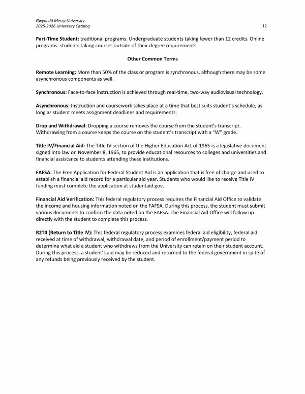 Gwynedd Mercy University 2025-2026 University Catalog 12