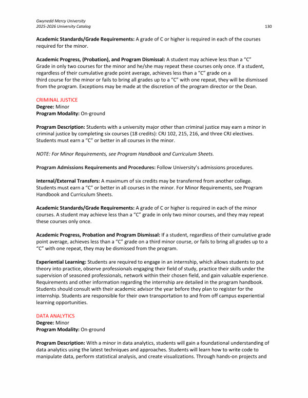 Gwynedd Mercy University 2025-2026 University Catalog 130