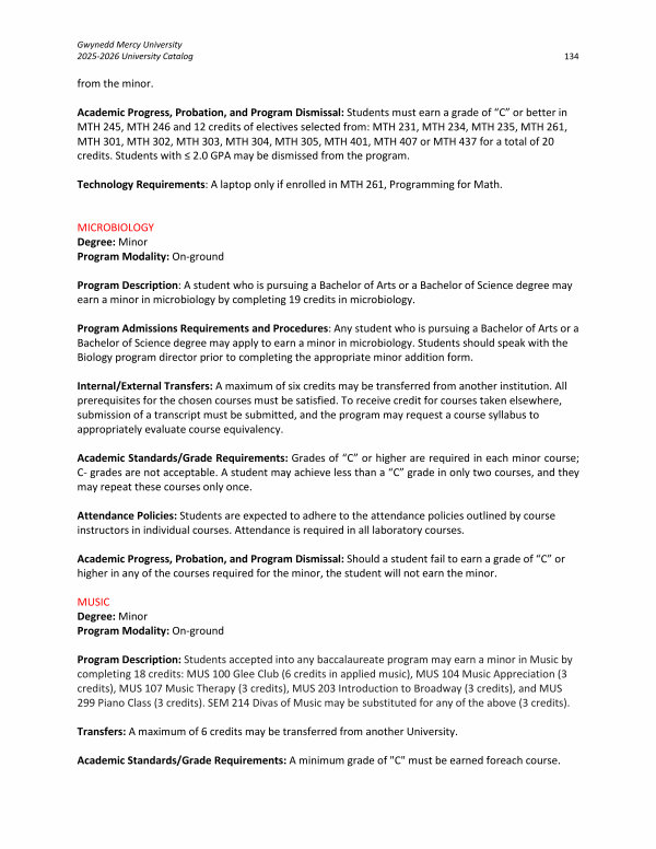 Gwynedd Mercy University 2025-2026 University Catalog 134