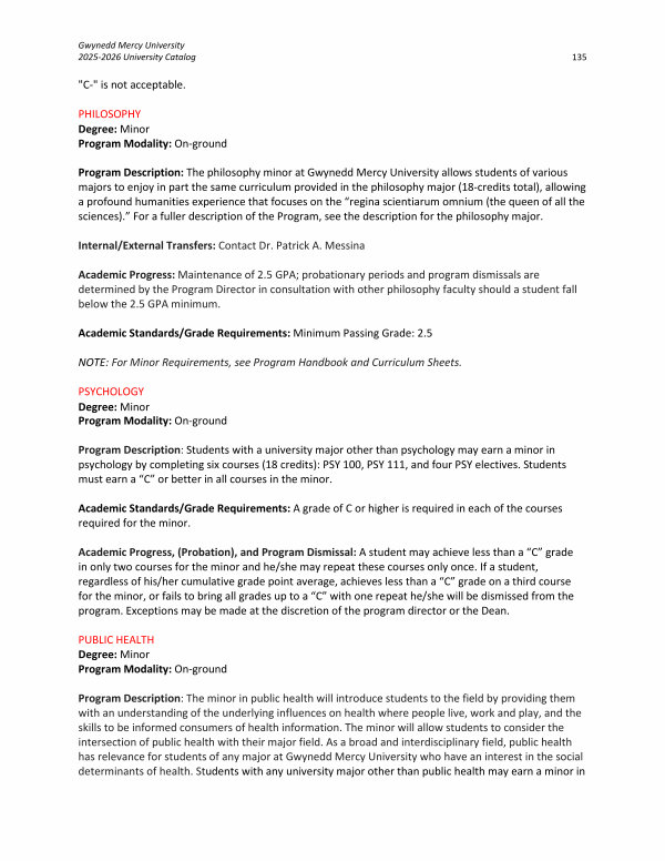 Gwynedd Mercy University 2025-2026 University Catalog 135