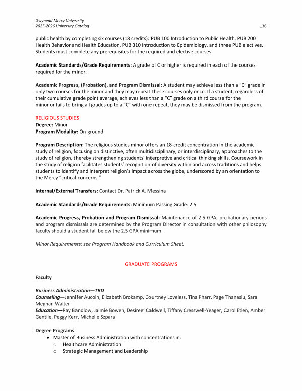 Gwynedd Mercy University 2025-2026 University Catalog 136