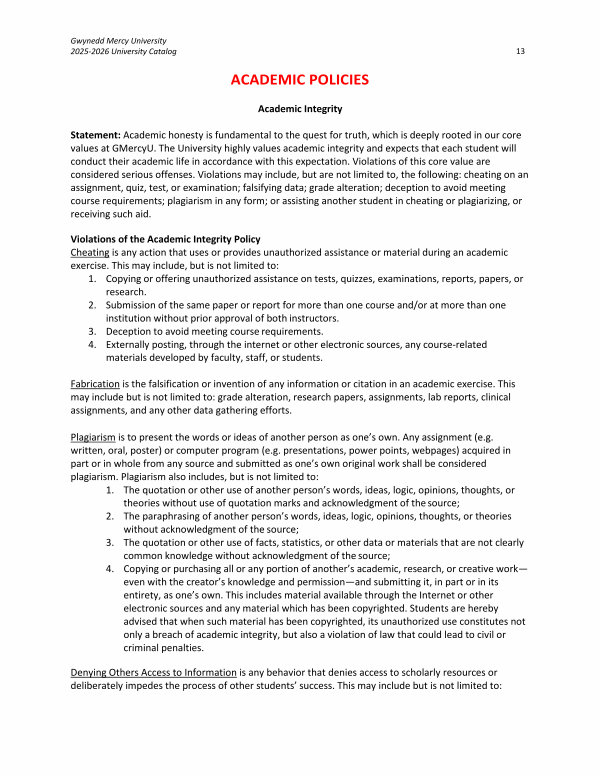 Gwynedd Mercy University 2025-2026 University Catalog 13
