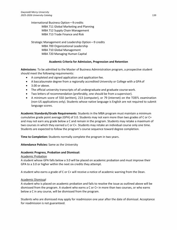Gwynedd Mercy University 2025-2026 University Catalog 139