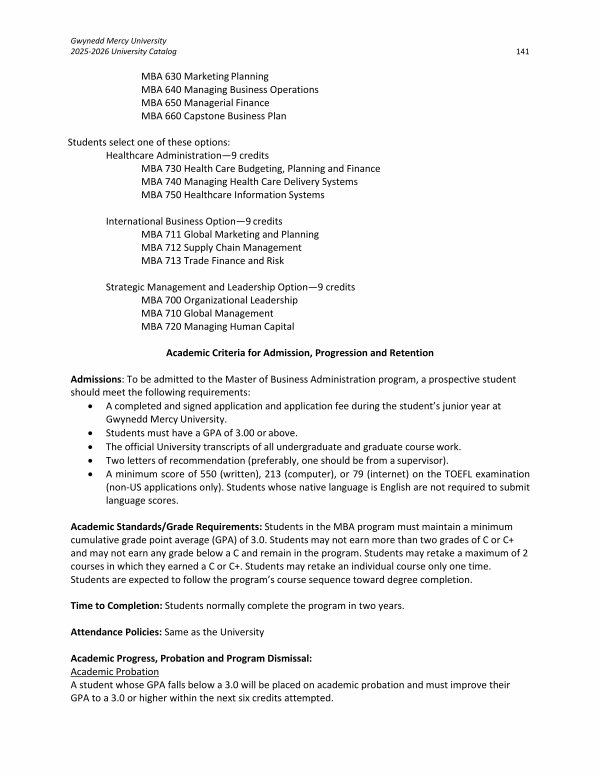 Gwynedd Mercy University 2025-2026 University Catalog 141