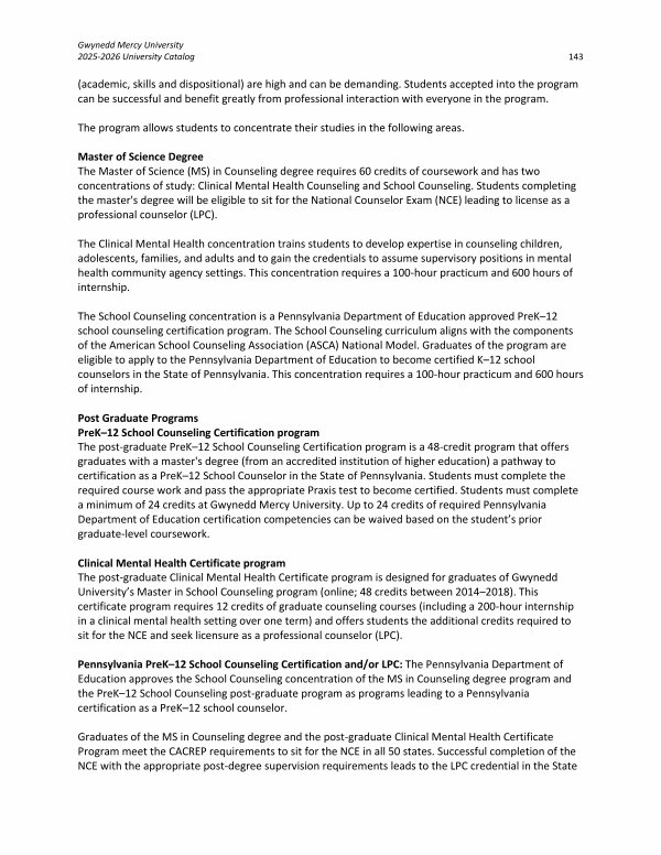 Gwynedd Mercy University 2025-2026 University Catalog 143