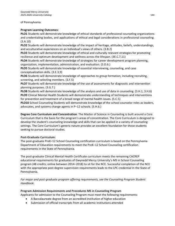 Gwynedd Mercy University 2025-2026 University Catalog 144