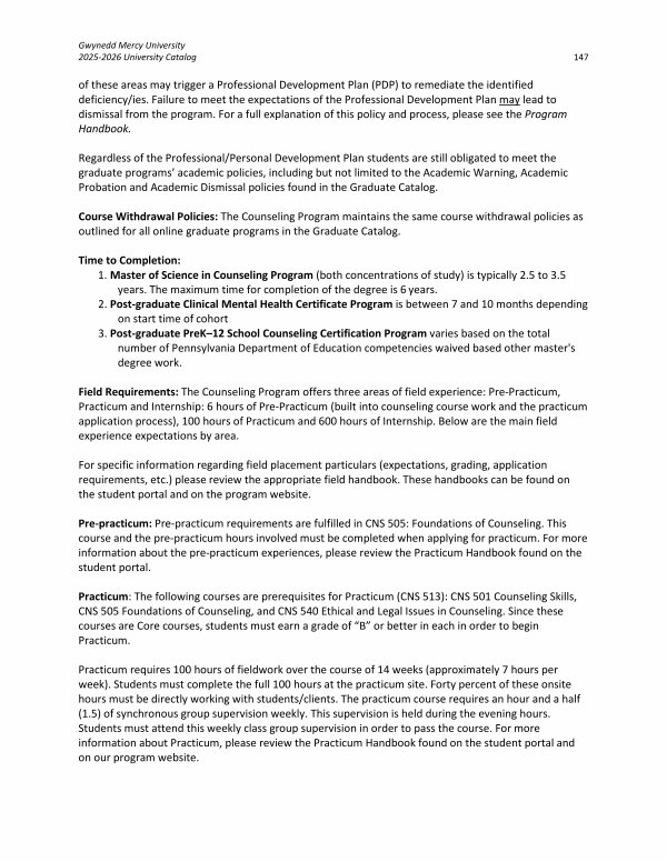 Gwynedd Mercy University 2025-2026 University Catalog 147