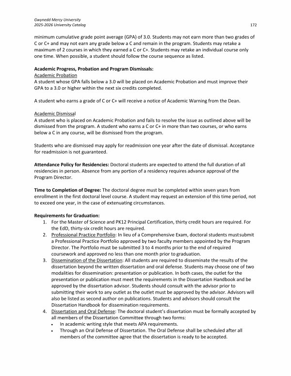 Gwynedd Mercy University 2025-2026 University Catalog 172