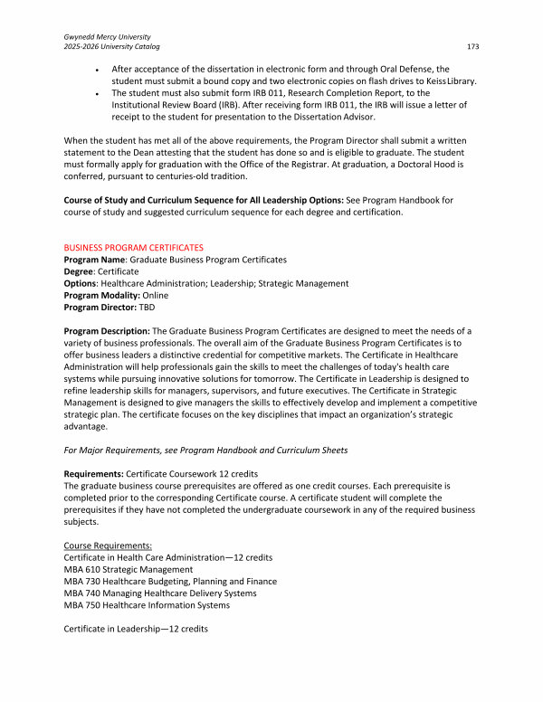 Gwynedd Mercy University 2025-2026 University Catalog 173