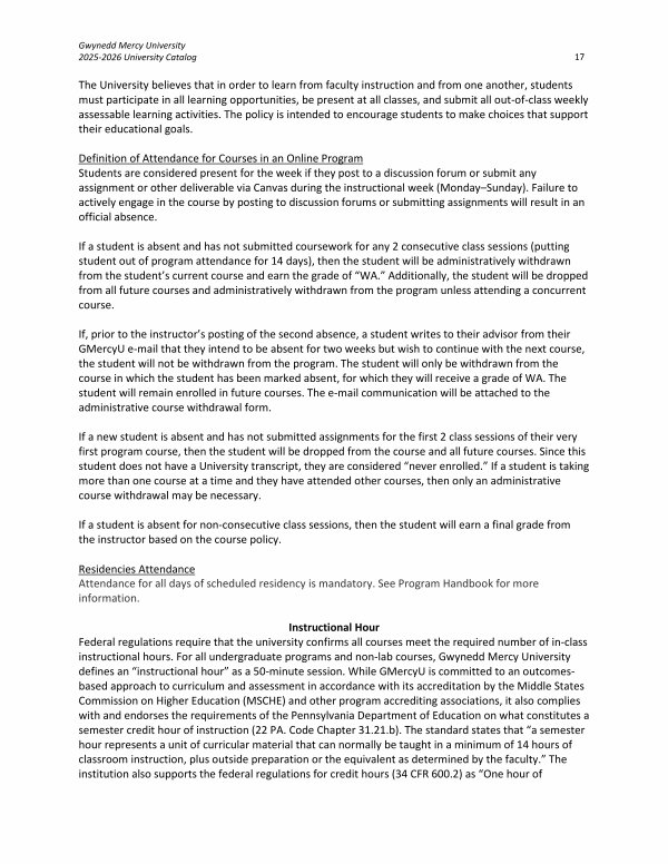 Gwynedd Mercy University 2025-2026 University Catalog 17