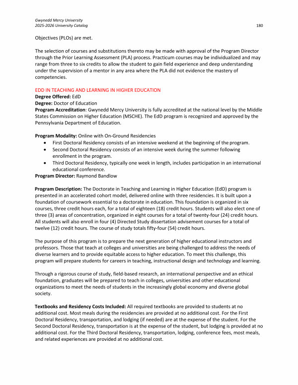 Gwynedd Mercy University 2025-2026 University Catalog 180