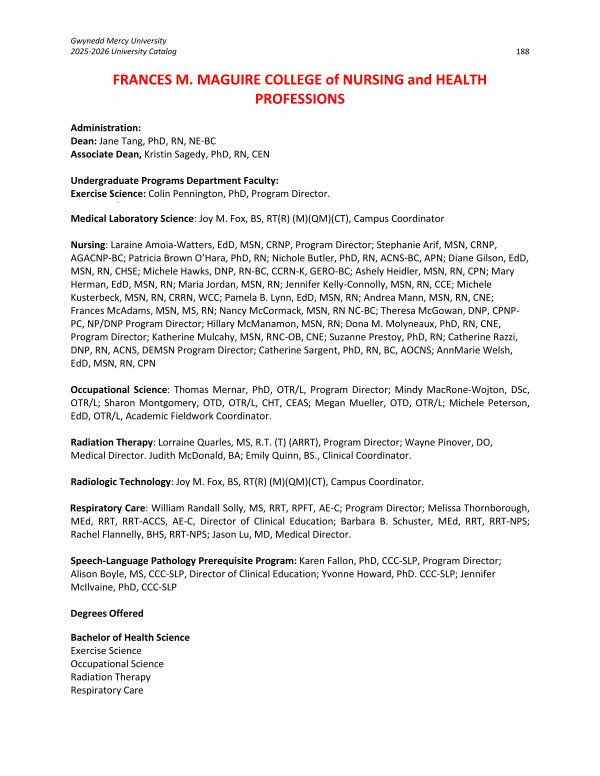 Gwynedd Mercy University 2025-2026 University Catalog 188