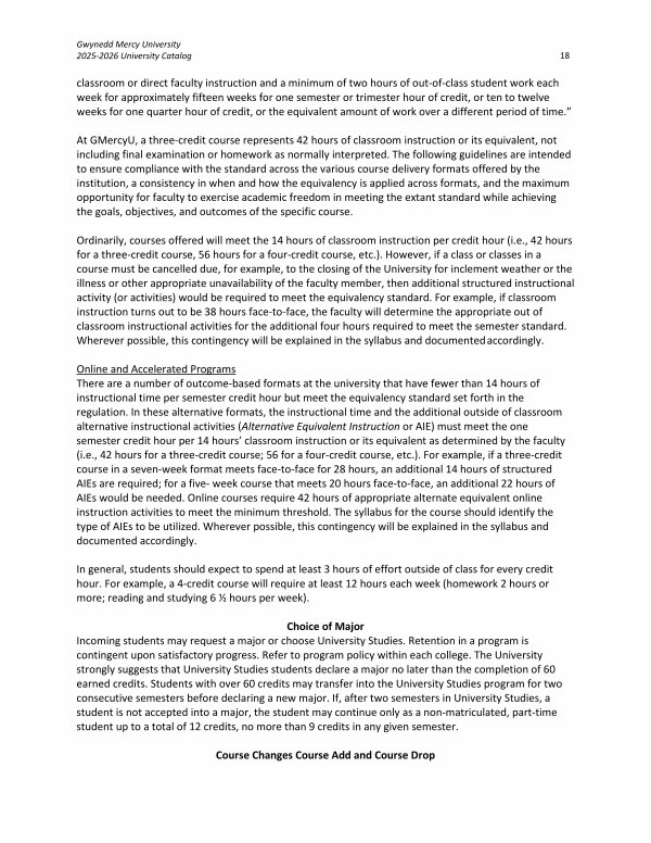 Gwynedd Mercy University 2025-2026 University Catalog 18