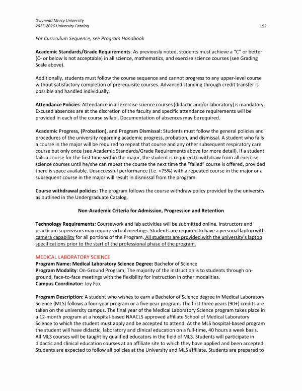 Gwynedd Mercy University 2025-2026 University Catalog 192