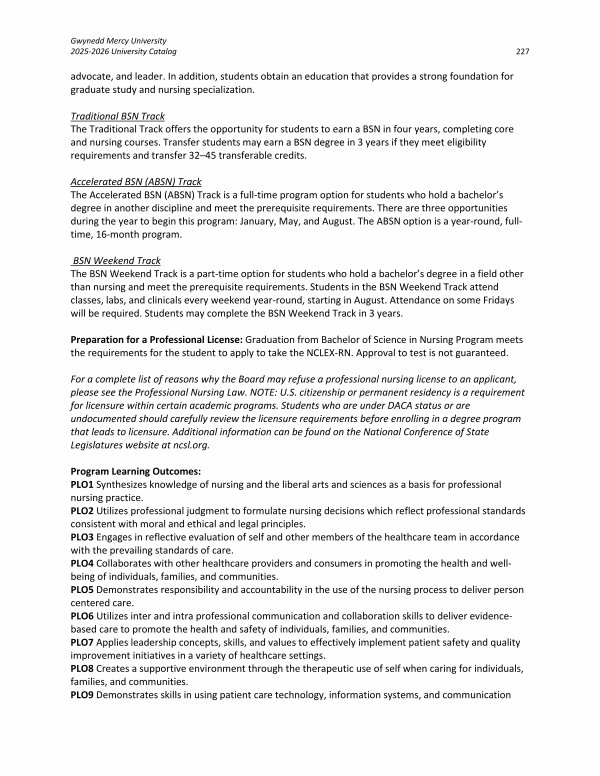 Gwynedd Mercy University 2025-2026 University Catalog 227