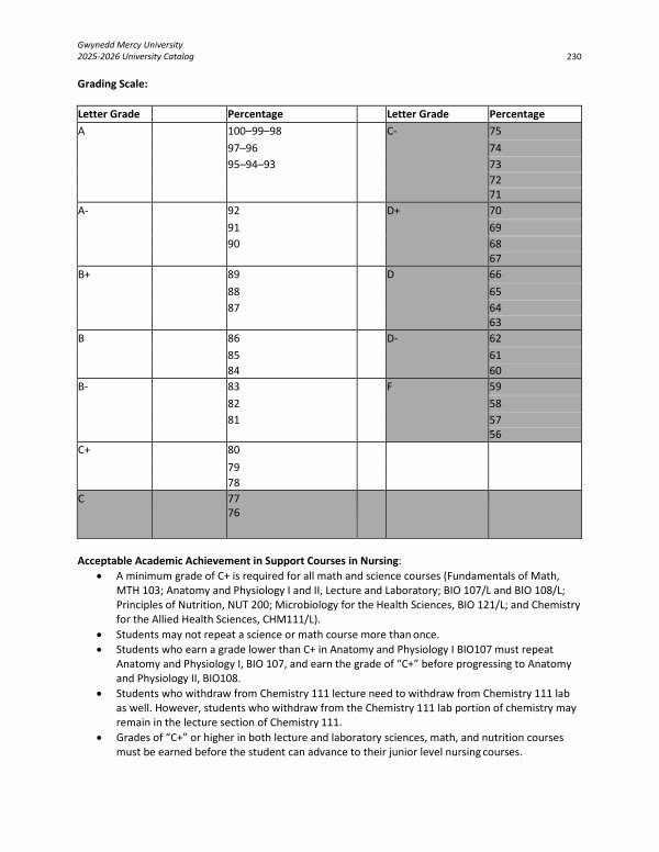 Gwynedd Mercy University 2025-2026 University Catalog 230