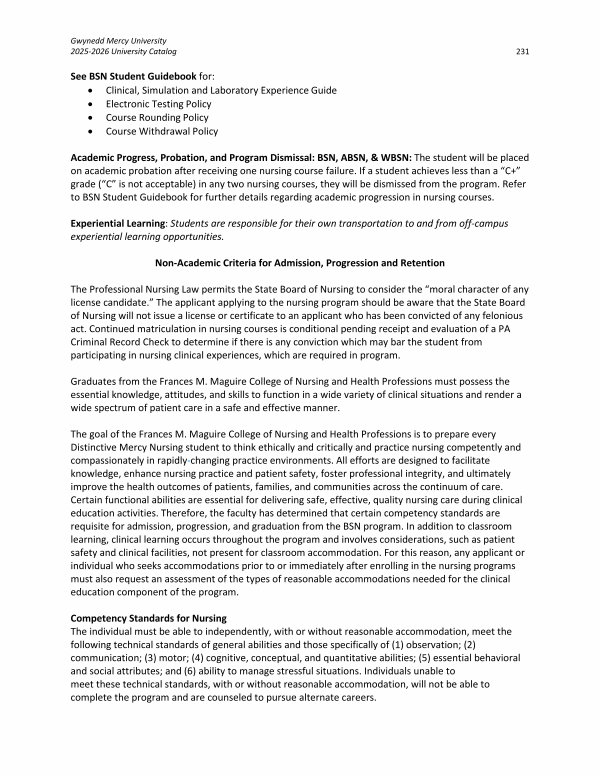 Gwynedd Mercy University 2025-2026 University Catalog 231