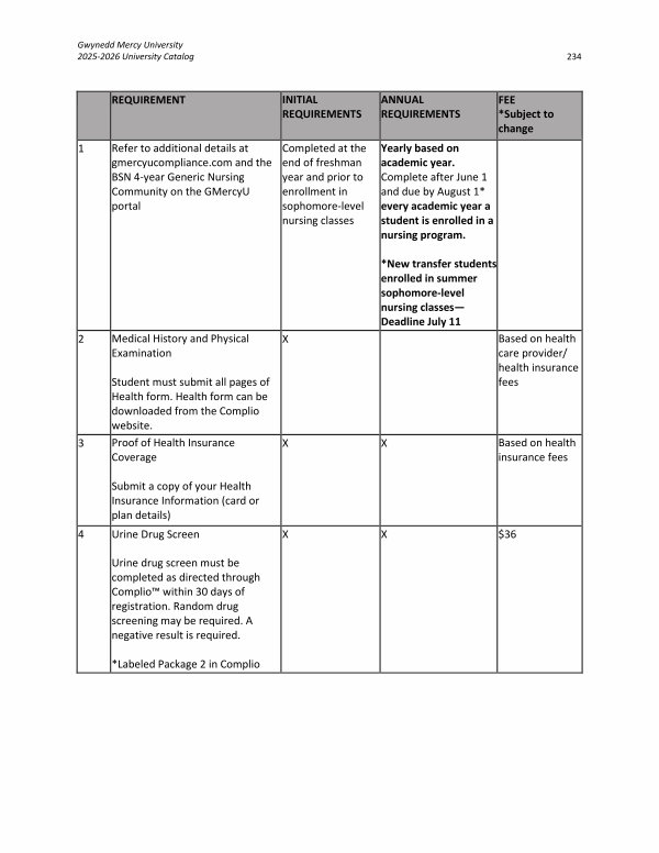 1 Refer to additional details at gmercyucompliance. com and the BSN 4-year Generic Nursing Community on the GMercyU portal |