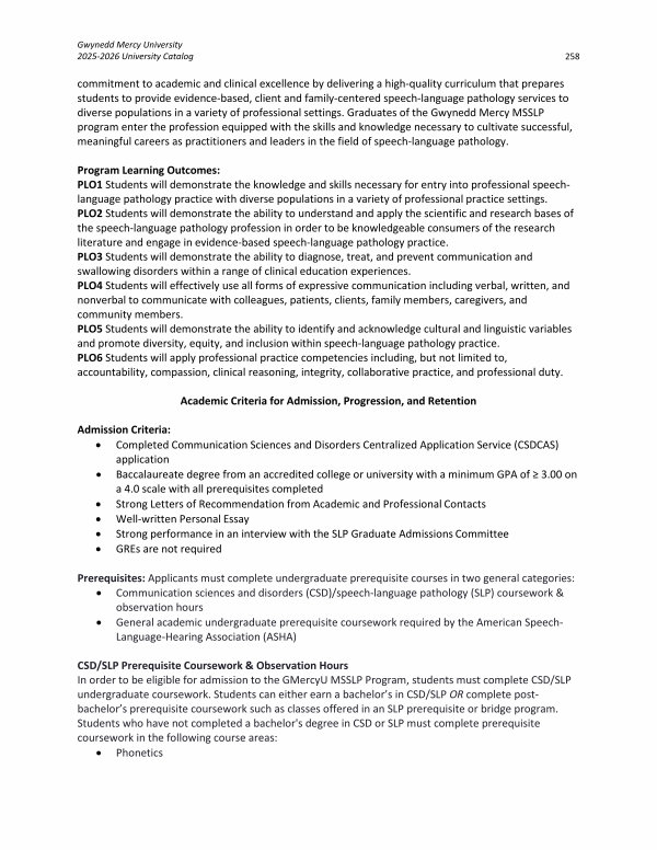 Gwynedd Mercy University 2025-2026 University Catalog 258