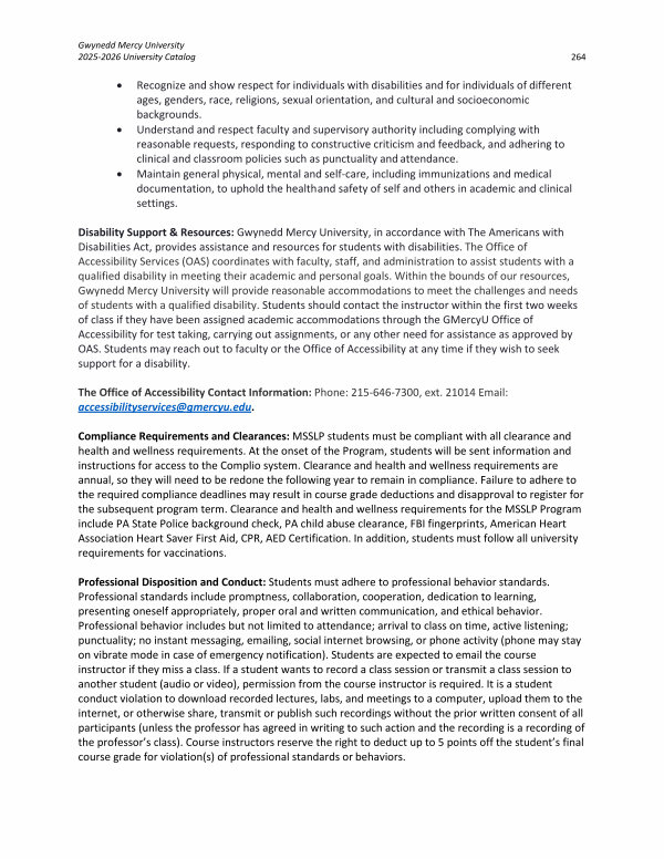 Gwynedd Mercy University 2025-2026 University Catalog 264