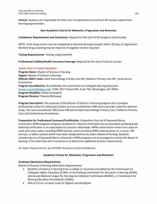 Gwynedd Mercy University 2025-2026 University Catalog 267