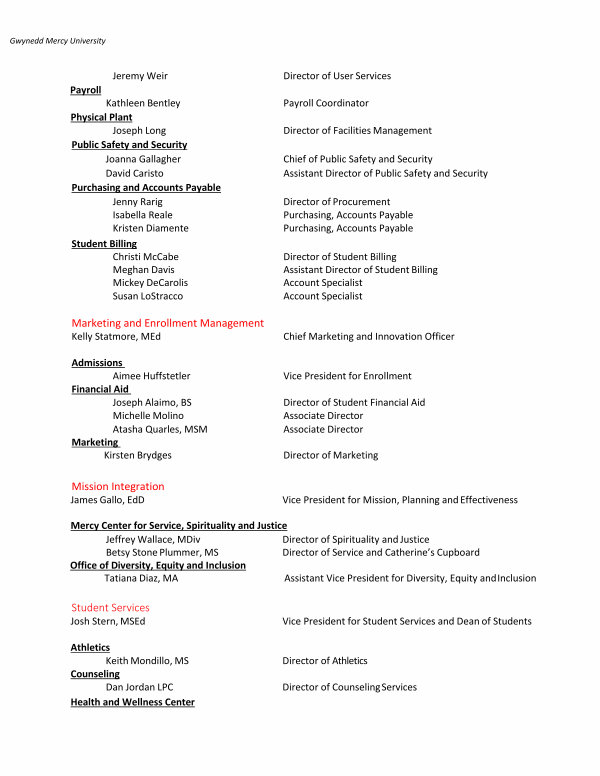 Director of Athletics Director of Counseling Services