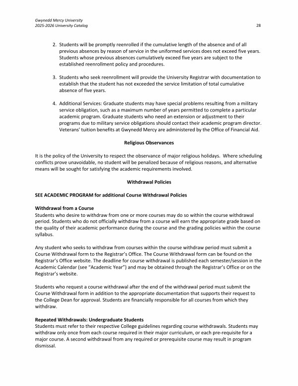 Gwynedd Mercy University 2025-2026 University Catalog 28