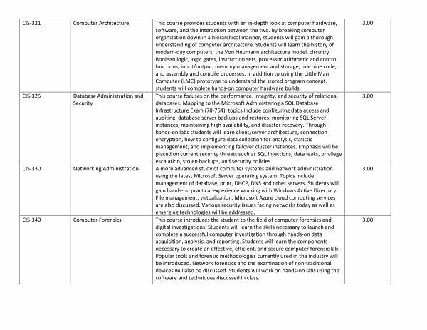 A more advanced study of computer systems and network administration using the latest Microsoft Server operating system. Topics include management of database, print, DHCP, DNS and other servers. Students will gain hands-on practical experience working with Windows Active Directory. File management, virtualization, Microsoft Azure cloud computing services are also discussed. Various security issues facing networks today as well as emerging technologies will be addressed. |