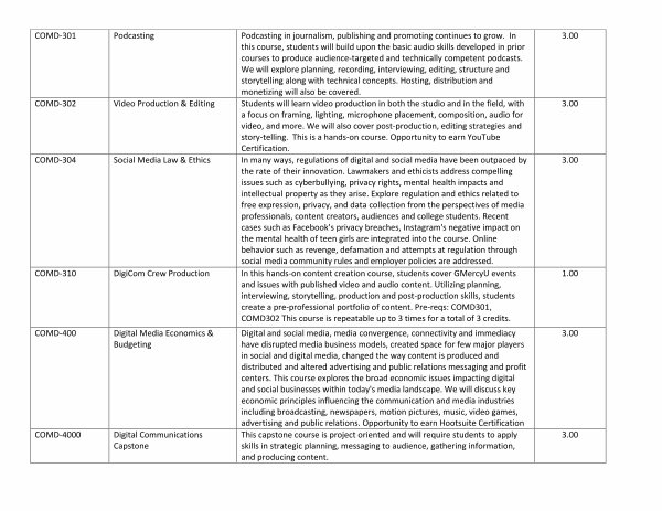 create a pre-professional portfolio of content. Pre-reqs: COMD301, |