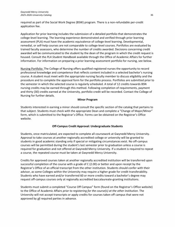 Gwynedd Mercy University 2025-2026 University Catalog 36