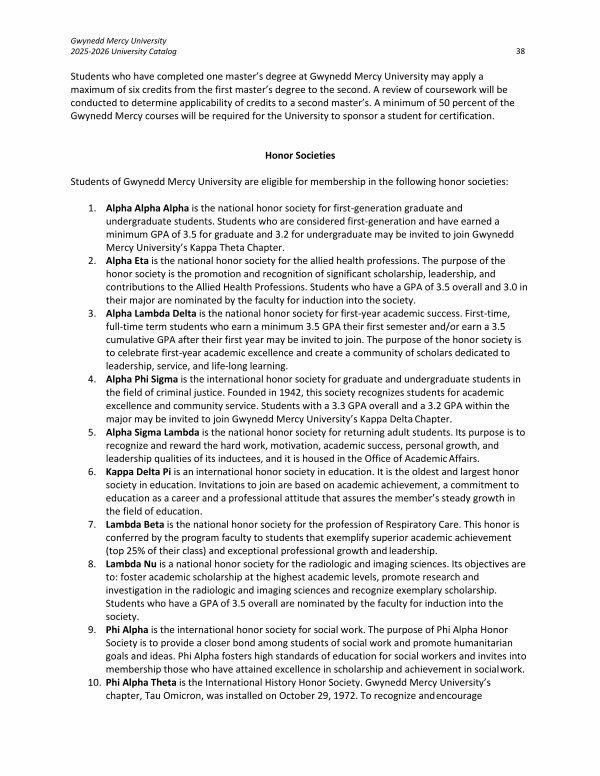 Honor Societies Students of Gwynedd Mercy University are eligible for membership in the following honor societies: