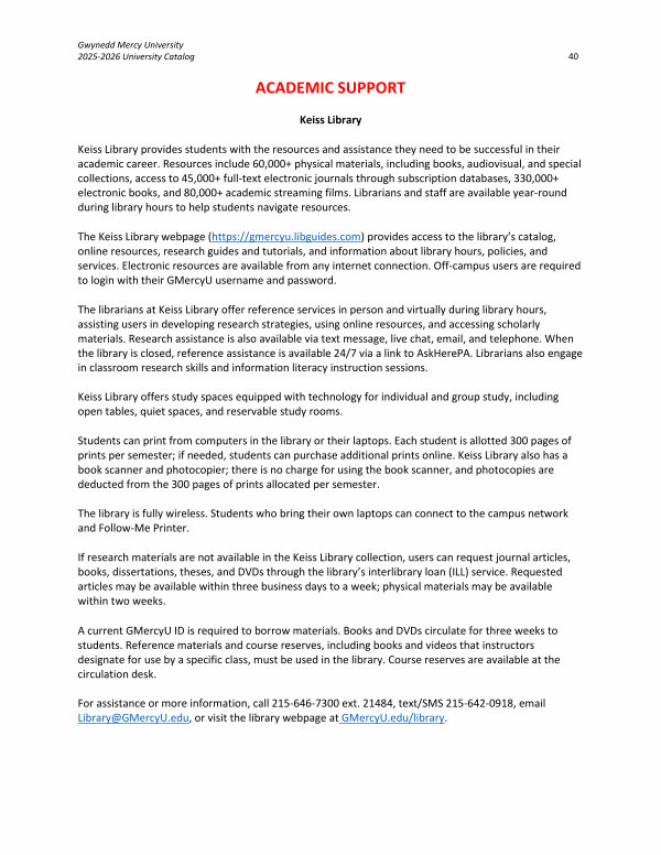 Gwynedd Mercy University 2025-2026 University Catalog 40