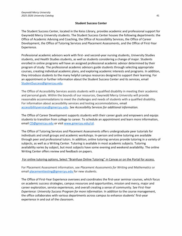 Gwynedd Mercy University 2025-2026 University Catalog 41