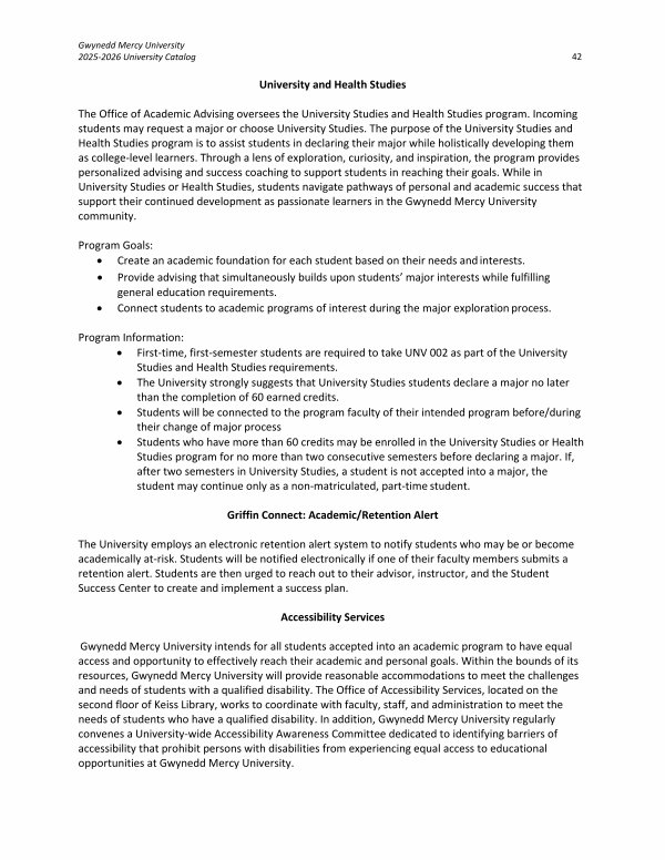 Gwynedd Mercy University 2025-2026 University Catalog 42