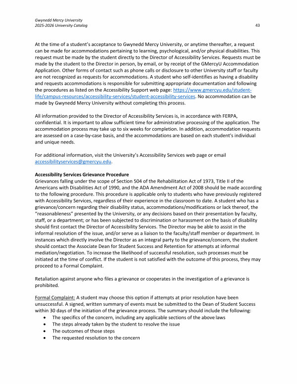 Gwynedd Mercy University 2025-2026 University Catalog 43