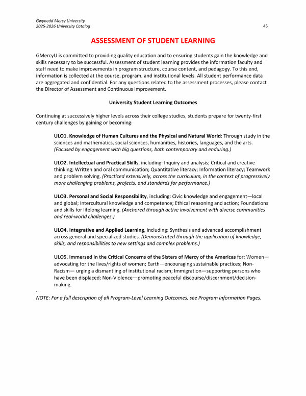 Gwynedd Mercy University 2025-2026 University Catalog 45