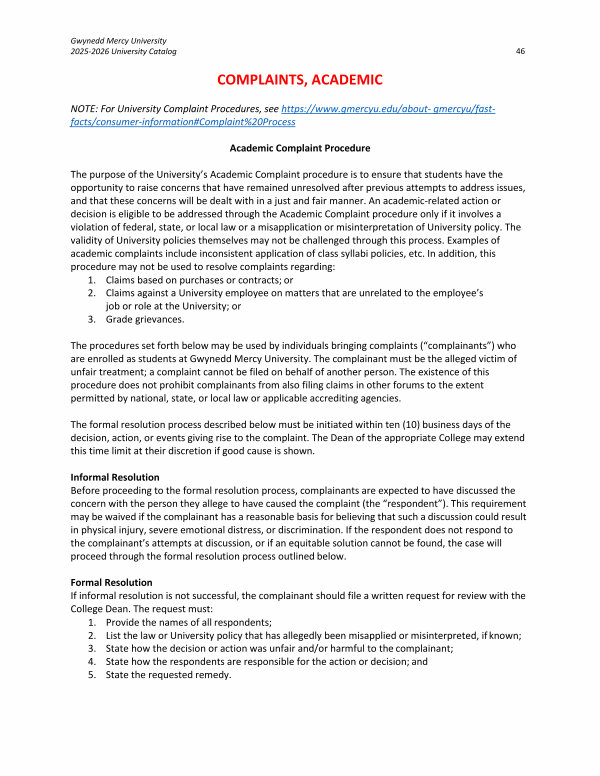 NOTE: For University Complaint Procedures, see https:// www. gmercyu. edu / about- gmercyu / fastfacts / consumer-information # Complaint % 20Process
