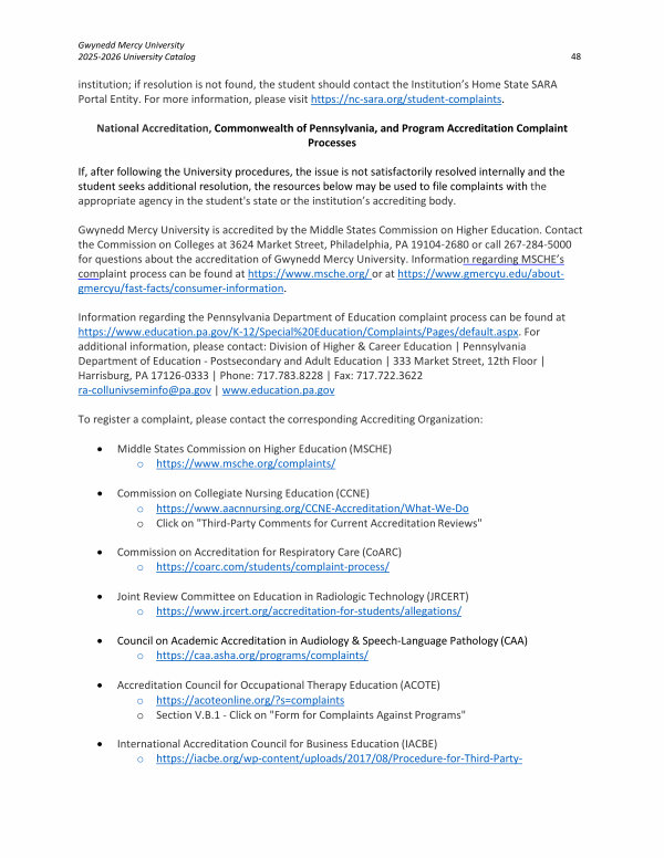National Accreditation, Commonwealth of Pennsylvania, and Program Accreditation Complaint Processes