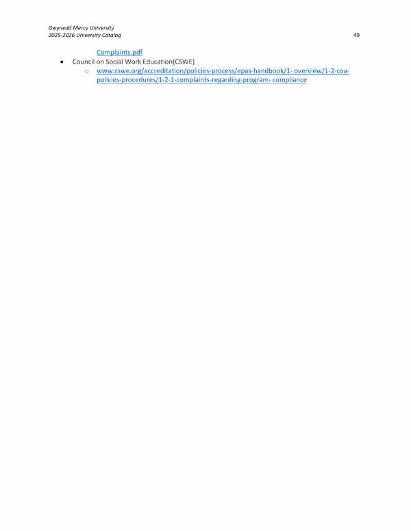 Gwynedd Mercy University 2025-2026 University Catalog 49