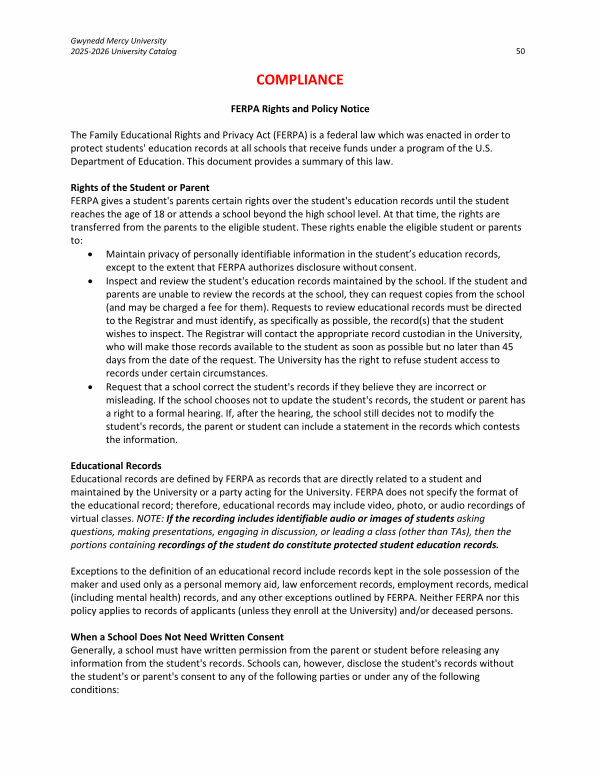 Gwynedd Mercy University 2025-2026 University Catalog 50