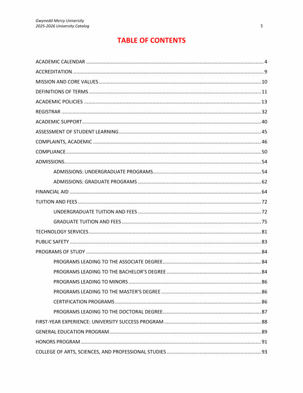 Gwynedd Mercy University 2025-2026 University Catalog 5